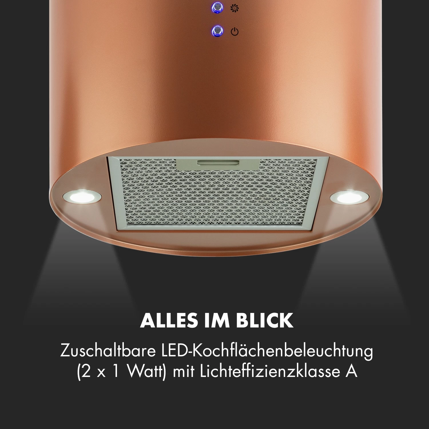 Barett Inselabzugshaube Ø35cm Umluft 558 M³/h LED Aktivkohlefilter