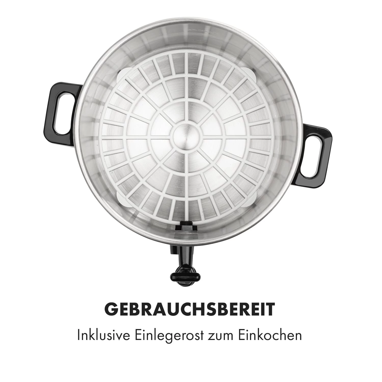 Die Bedienung ist denkbar einfach: Gefüllte Gläser in den Einkochtopf stellen, Wasser einfüllen, dann die notwendige Temperatur zwischen 30 und 100 °C wählen und schon kann es losgehen. Der Topf hält selbstständig die gewählte Temperatur, ein Überhitzungsschutz sorgt für Sicherheit beim Einkochen und schaltet den Topf aus, wenn er zu heiß wird oder trocken läuft.