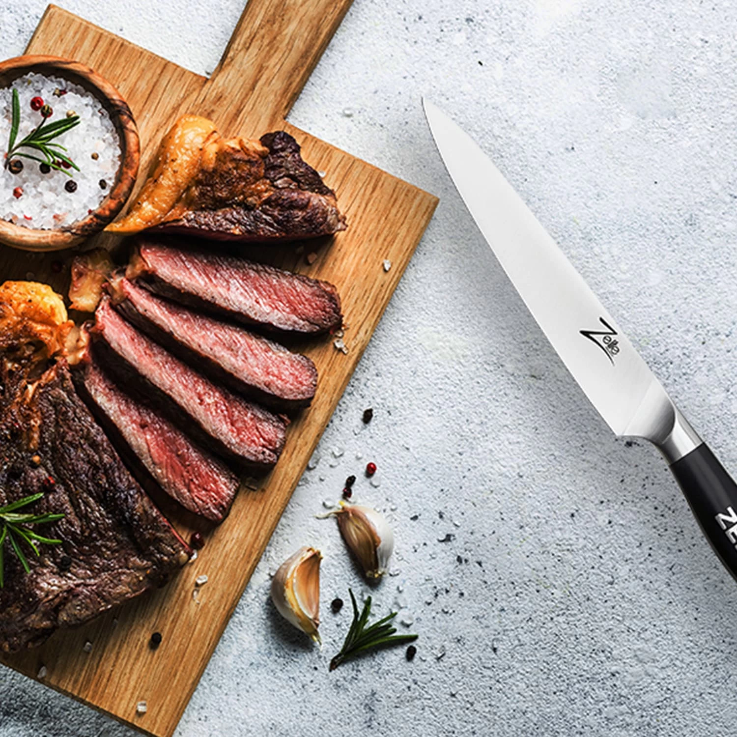 Die perfekten Messer für Hobbyköche, Küchenprofis und alle, die es gern scharf haben! Die Zelite Infinity by Klarstein Comfort Pro Messerreihe verbindet extreme Schärfe, hohe Qualität und einfache Handhabung mit einem edlen Look und macht Schneiden, Hacken oder Schälen ganz einfach. Die Klingen aus deutschem Qualitäts-Edelstahl von Thyssenkrupp sind hart, flexibel und rasiermesserscharf. Dank kanten- und fugenfreiem Übergang von Klinge zu Kropf sowie der ergonomischen Griffe mit perfekter Balance liegen sie gut in der Hand und ermöglichen perfekte Präzisionsschnitte.