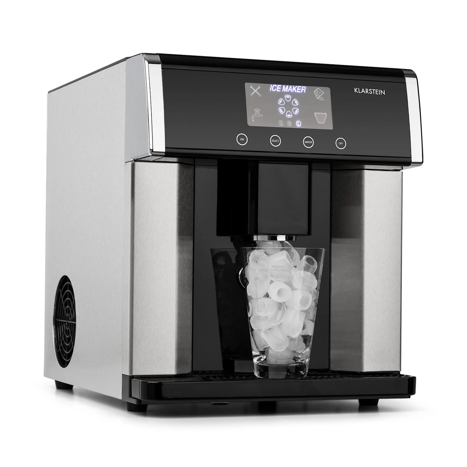 Eiswürfel in verschiedenen Größen: Die Eiszeit Eiswürfelmaschine von Klarstein bietet kühle Frische zu jeder Gelegenheit.
