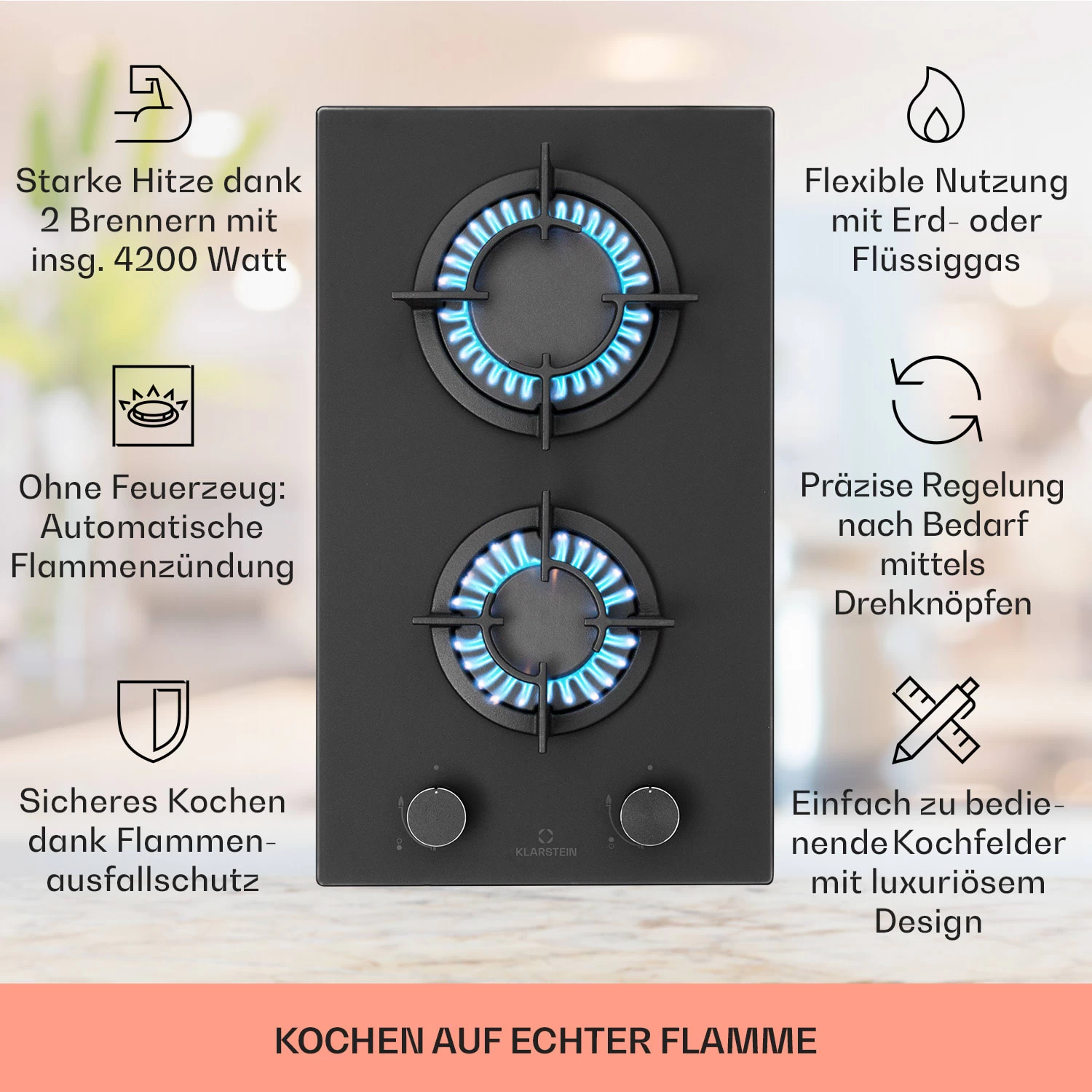 - energiesparendes Gaskochfeld mit 2 Kochfeldern