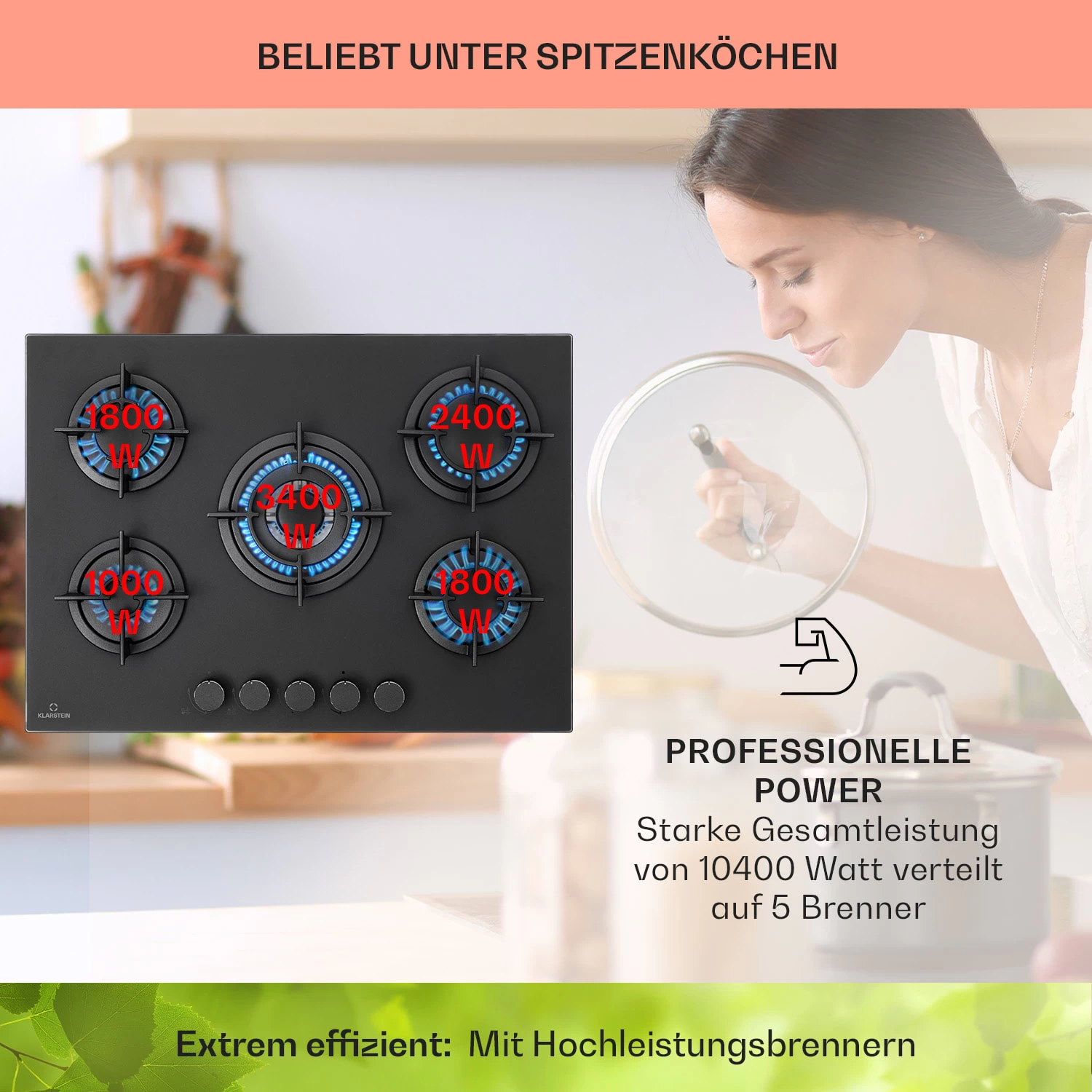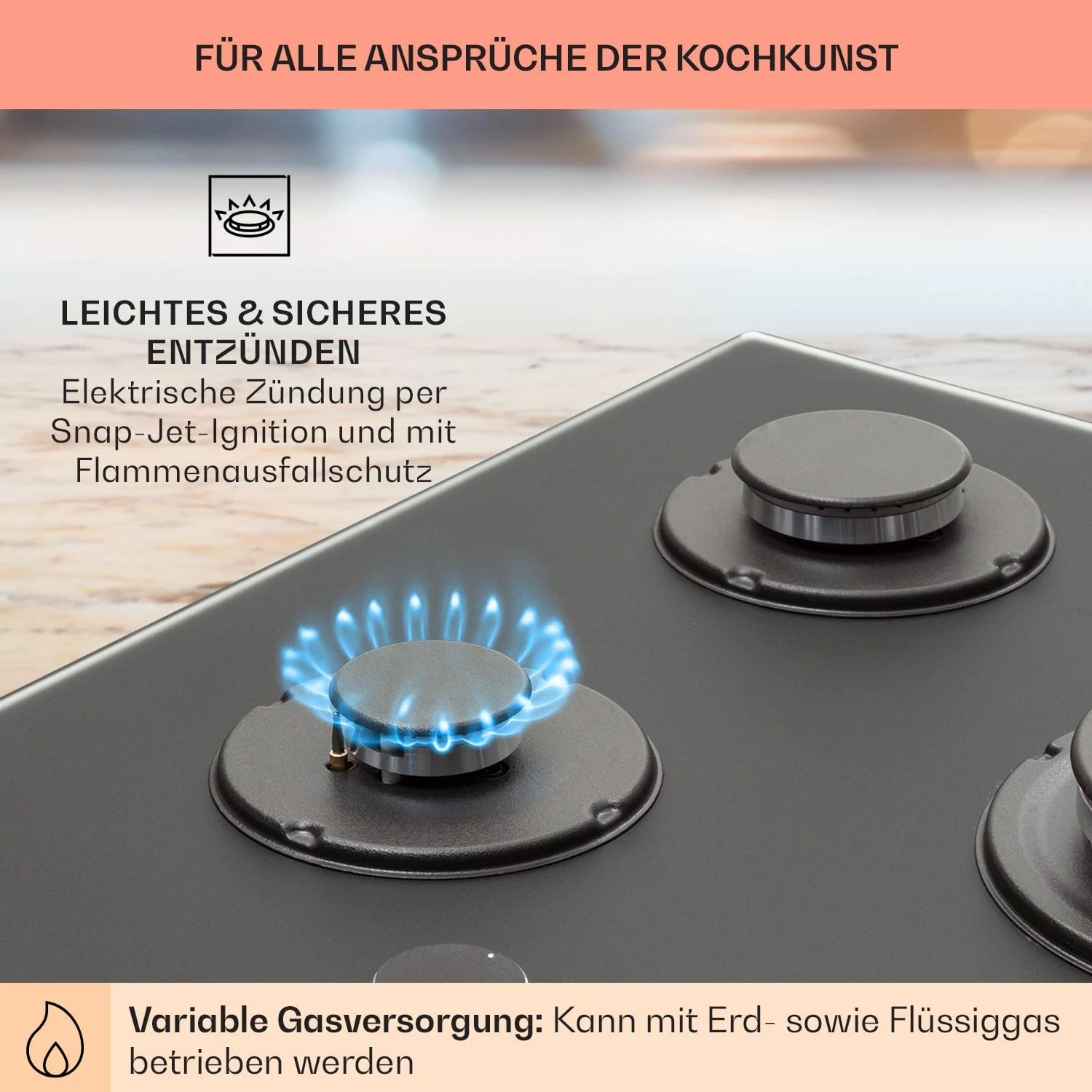 Kochen mit allen Vorteilen des Gasherds: Das Firetale Gaskochfeld von Klarstein überzeugt durch Kochkomfort und ein edles Design mit sandgestrahlter Glasoberfläche!