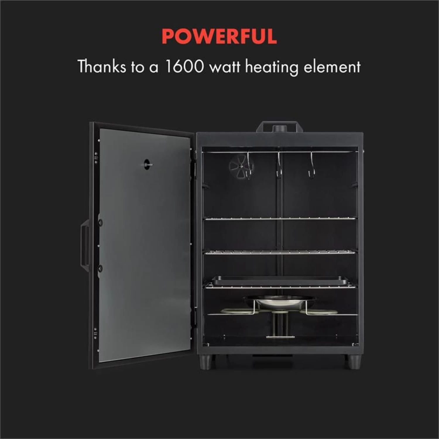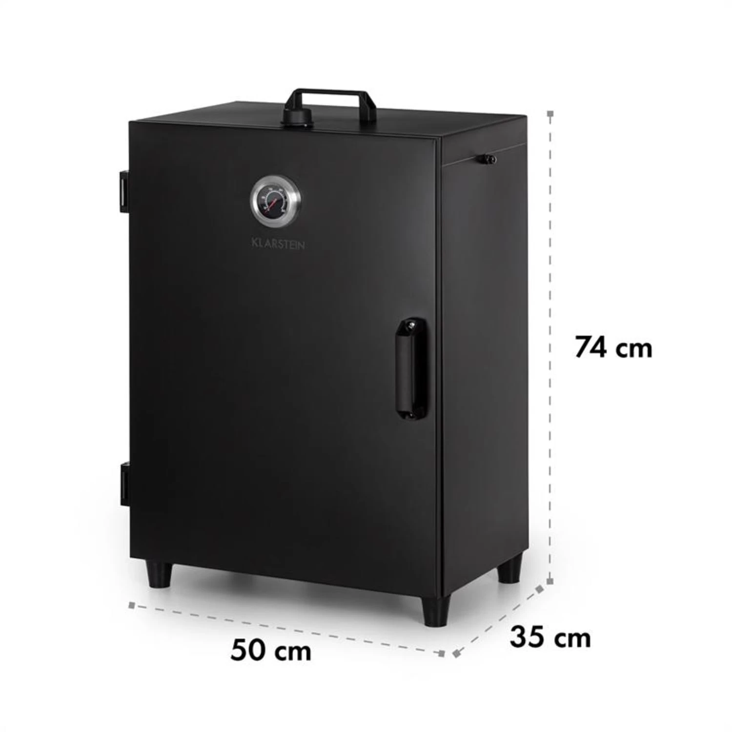 Entdecken Sie die traditionelle Kunst des Räucherns. Mit dem Klarstein Flintstone Räucherofen verleihen Sie verschiedensten Speisen ganz nach eigenen Wünschen den richtigen Geschmack. Und nebenbei erhalten Fleisch, Fisch oder Wurstwaren eine deutlich längere Haltbarkeit! Mit einem 1600 Watt starken, elektrischen Heizelement sowie einem regelbaren Thermostat an der Oberseite des Gerätes bringt der Ofen die Aromaholzschnitzel ordentlich zum Rauchen und gart gleichzeitig die Räucherware ganz langsam zur Perfektion. Drei verchromte Räucherroste mit jeweils 40 x 25 cm Fläche bieten reichlich Platz für Speckseiten, Tofublöcke oder eigene Wurstkreationen, während drei Haken zusätzlichen Platz zum Aufhängen von Würsten oder Schinken bieten. Eine herausnehmbare Tropfschale fängt Kondenswasser und abtropfendes Fett und erleichtert die anschließende Reinigung. Die Dichte des Rauchs wird beim Klarstein Flintstone Räucherofen ganz bequem über eine rückseitige Lüftungsklappe reguliert. Ein in die Tür integriertes Thermometer bis 300 °C macht die Überwachung der Räuchertemperatur ganz einfach. Räucherschnitzel und -aromen werden in der herausnehmbaren Edelstahlschüssel direkt über dem elektrischen Heizelement in leckeren Rauch verwandelt. Dank der Leichtbauweise und einem topseitigen Tragegriff lässt sich der Räucherofen mit wenig Aufwand versetzen.