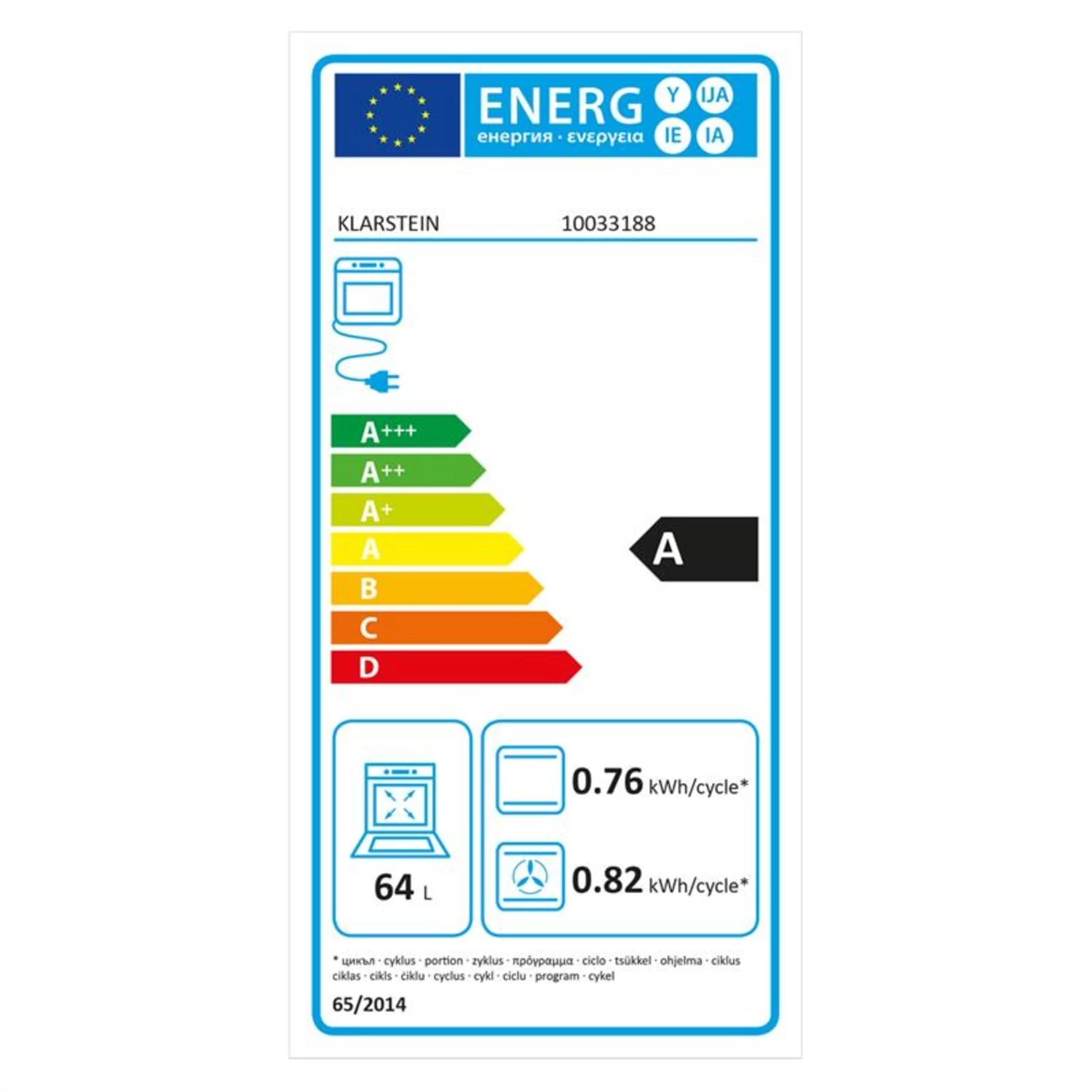 Der elektrische Klarstein Gusteau Einbaubackofen bringt nicht nur die ganze Welt der gebackenen Genüsse in Ihre Küche, sondern verleiht auch optisch jeder Küchenfront das gewisse Etwas. Und dabei ist er mit Energieeffizienzklasse A besonders sparsam und umweltfreundlich. Im 64 Liter großen Innenraum bereiten Sie gekonnt und sparsam nicht nur Kuchen, Auflauf oder Pizza zu. Mit seinen 8 Funktionen Auftauen, Ober- & Unterhitze, Ober- & Unterhitze & Umluft, Grill, Umluftgrill, Grill & Unterhitze, Grill & Oberhitze sowie Pyrolyse erfüllt er alle Ansprüche an einen unkomplizierten und leistungsfähigen Küchenherd. Zusätzlich besitzt der Einbaubackofen Gusteau einen manuellen Modus mit leicht bedienbarem Garzeittimer und wählbaren Temperaturen zwischen 50 und 250 °C. Die Bedienung erfolgt dabei selbsterklärend und komfortabel per Drehwahlschalter. Besonders einfach ist auch die Reinigung: Einfach das Pyrolyse-Programm wählen und alle Backrückstände im Innenraum werden bei 500 °C rückstandslos ausgebrannt. Auch optisch macht der Klarstein Gusteau Elektrobackofen eine tolle Figur: Luxuriöse Akzente setzt er mit gebürstetem Edelstahl und seiner doppelt verglasten Tür. Eben ein echter Blickfang in jeder Küche.