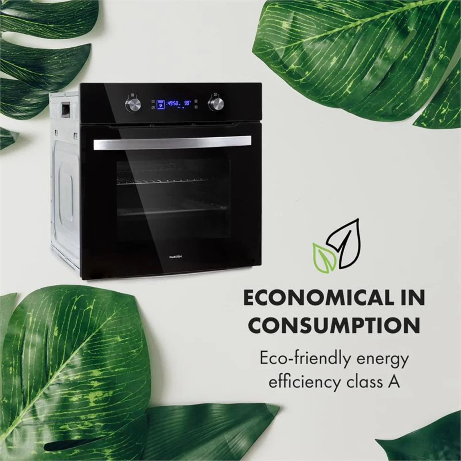 Der elektrische Klarstein Gusteau Einbaubackofen bringt nicht nur die ganze Welt der gebackenen Genüsse in Ihre Küche, sondern verleiht auch optisch jeder Küchenfront das gewisse Etwas. Und dabei ist er mit Energieeffizienzklasse A besonders sparsam und umweltfreundlich. Im 64 Liter großen Innenraum bereiten Sie gekonnt und sparsam nicht nur Kuchen, Auflauf oder Pizza zu. Mit seinen 8 Funktionen Auftauen, Ober- & Unterhitze, Ober- & Unterhitze & Umluft, Grill, Umluftgrill, Grill & Unterhitze, Grill & Oberhitze sowie Pyrolyse erfüllt er alle Ansprüche an einen unkomplizierten und leistungsfähigen Küchenherd. Zusätzlich besitzt der Einbaubackofen Gusteau einen manuellen Modus mit leicht bedienbarem Garzeittimer und wählbaren Temperaturen zwischen 50 und 250 °C. Die Bedienung erfolgt dabei selbsterklärend und komfortabel per Drehwahlschalter. Besonders einfach ist auch die Reinigung: Einfach das Pyrolyse-Programm wählen und alle Backrückstände im Innenraum werden bei 500 °C rückstandslos ausgebrannt. Auch optisch macht der Klarstein Gusteau Elektrobackofen eine tolle Figur: Luxuriöse Akzente setzt er mit gebürstetem Edelstahl und seiner doppelt verglasten Tür. Eben ein echter Blickfang in jeder Küche.