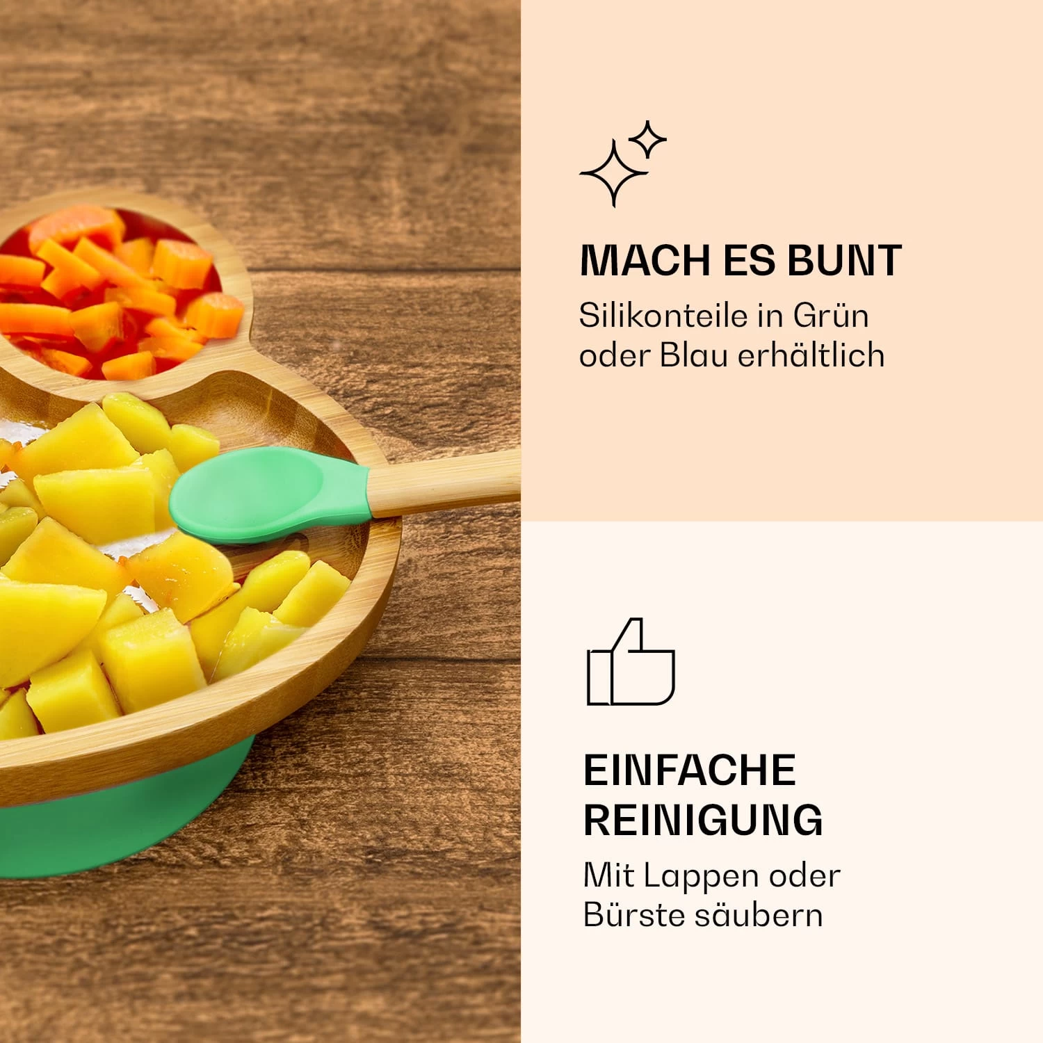 - Geschirrset für Kleinkinder mit Bambusteller und Löffel