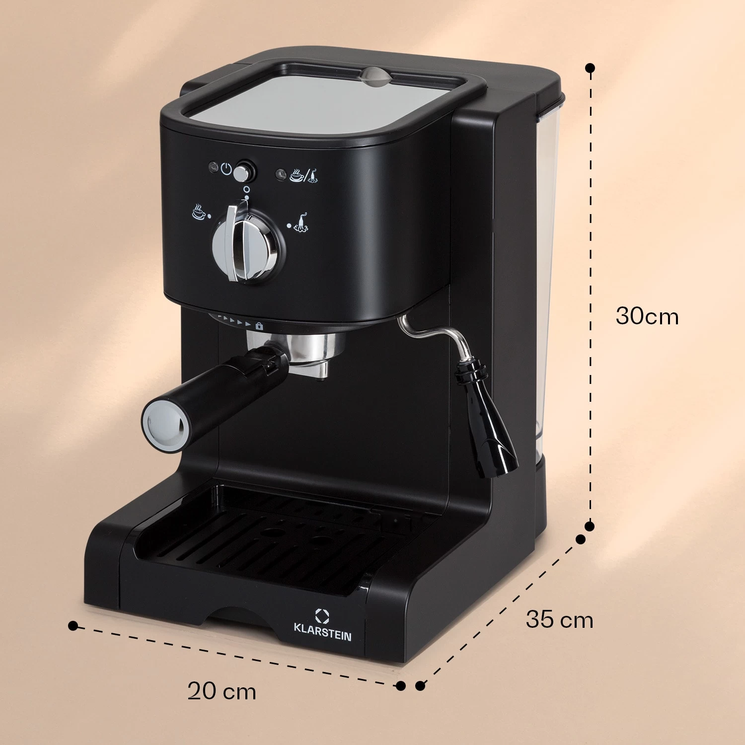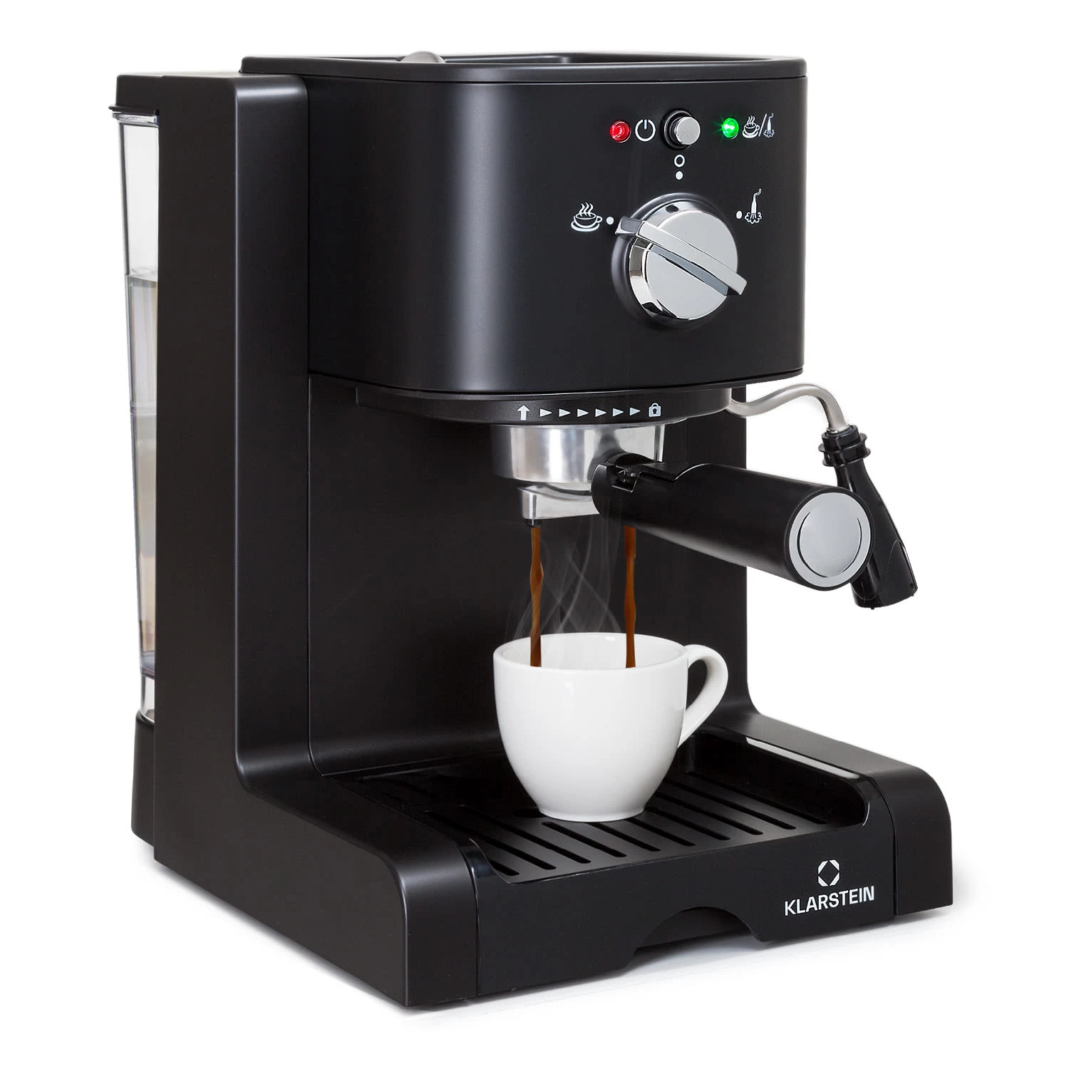 Für passionierte Genießer: Die Klarstein Passionata 20 ist eine elegante Espressomaschine mit ausgeprägtem Sinn für Funktionalität und Design. Mit kraftvollen 1.350 Watt Leistung und 20 bar entfesselt sie das volle Aroma des Kaffees. Mit der klassischen Siebträgermaschine aus Edelstahl können sowohl Kaffee- oder Espressopulver als auch Kaffee- und Espressopads verwendet werden. Im Handumdrehen kannst du mit der Dampfdüse cremigen Schaum für dein Heißgetränk zaubern. Du kannst zwei Tassen gleichzeitig brühen und diese auf der oberen Wärmeplatte warmhalten.