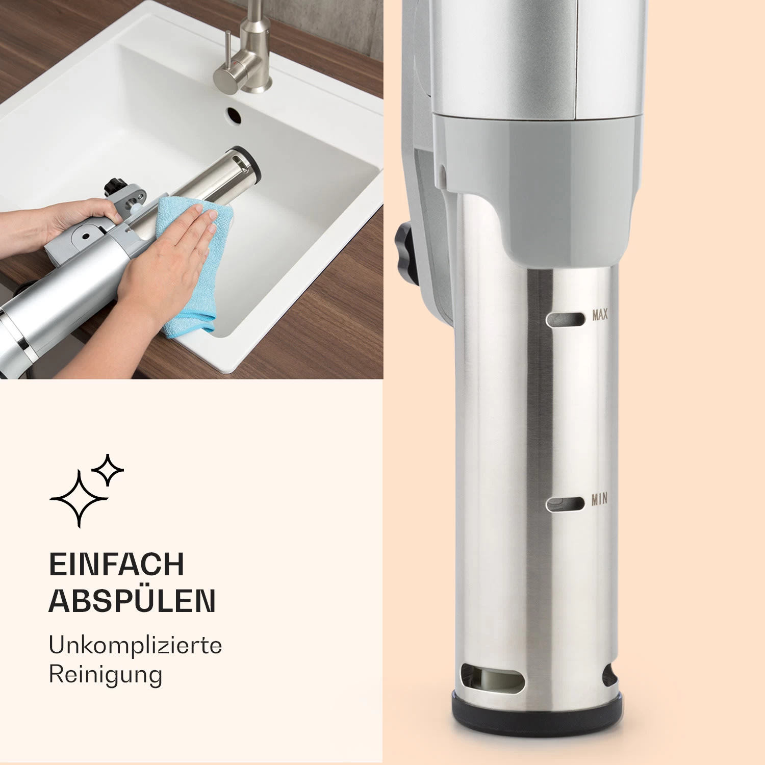 Gesund und geschmackvoll: Der Quickstick Flex Sous Vide Garer mit Touch-Display, das du um 180 °C drehen kannst!
