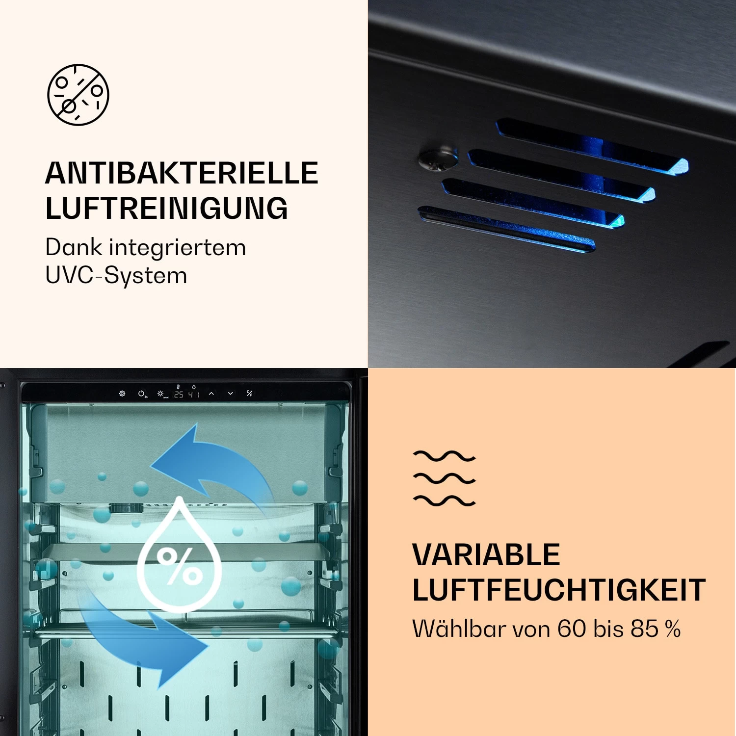 - Luftfeuchtigkeitskontrolle: einstellbar auf 60 – 85 %