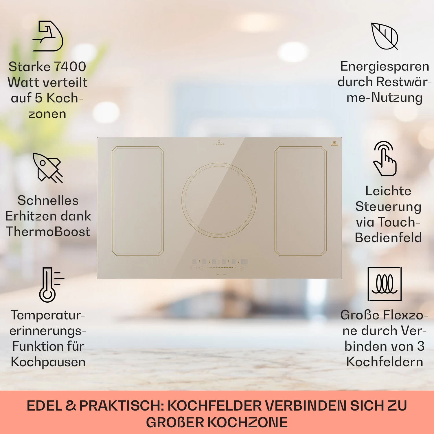 Victoria 5 Flex Induktionskochfeld Einbau 7400W 2 Flexzonen Timer