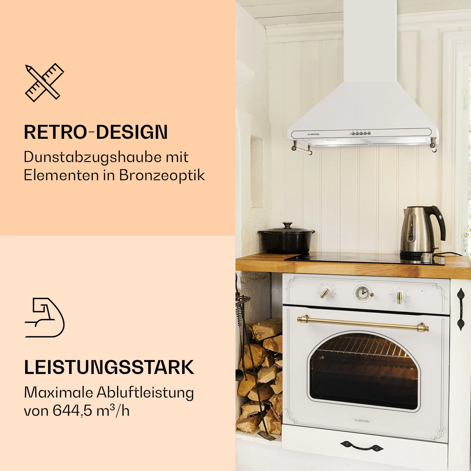 Die Klarstein Victoria 60 Dunstabzugshaube setzt einen edlen Akzent im Retro-Stil und sorgt für gute Luft in der Küche.
