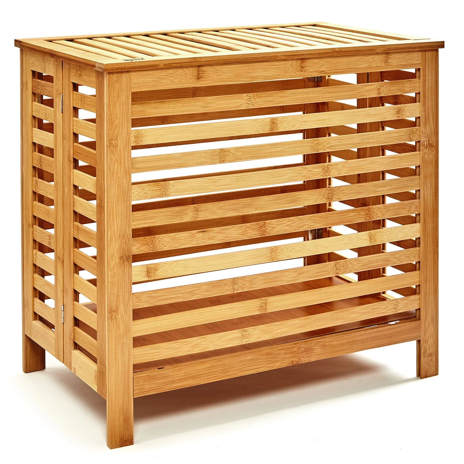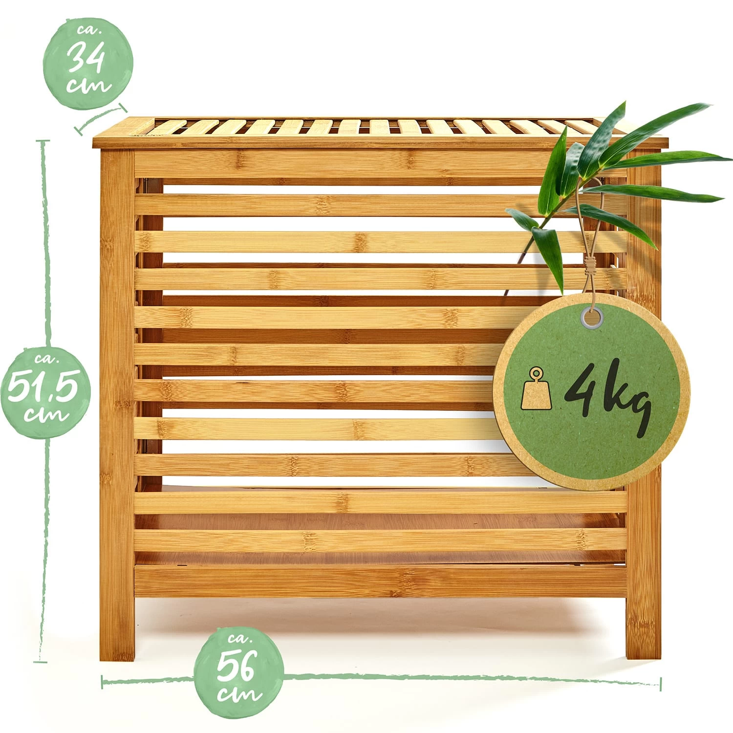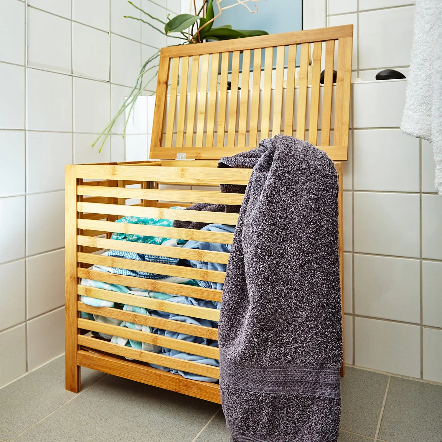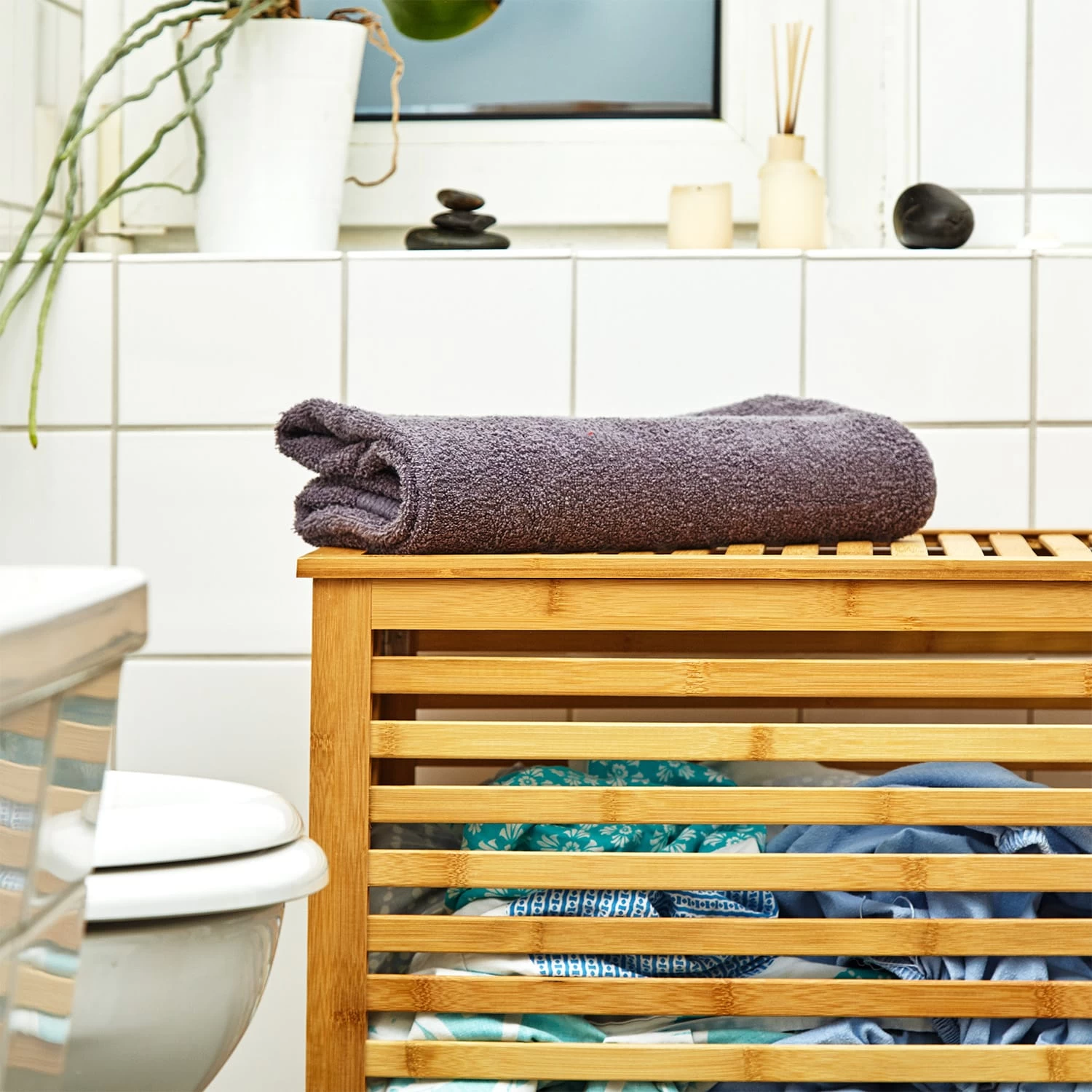 Keine Lust mehr auf Wäschechaos im Bad, im Schlafzimmer oder Kinderzimmer? Unsere blumfeldt Wäschetruhe sorgt im Handumdrehen für Ordnung und ist ganz nebenbei noch ein echter Blickfang. Der stylische Wäschekorb mit praktischen Lüftungsschlitzen ist komplett aus Bambus gefertigt. Durch seinen klappbaren Deckel kannst du ihn auch ideal als Ablagefläche für Handtücher oder frische Kleidung nutzen.